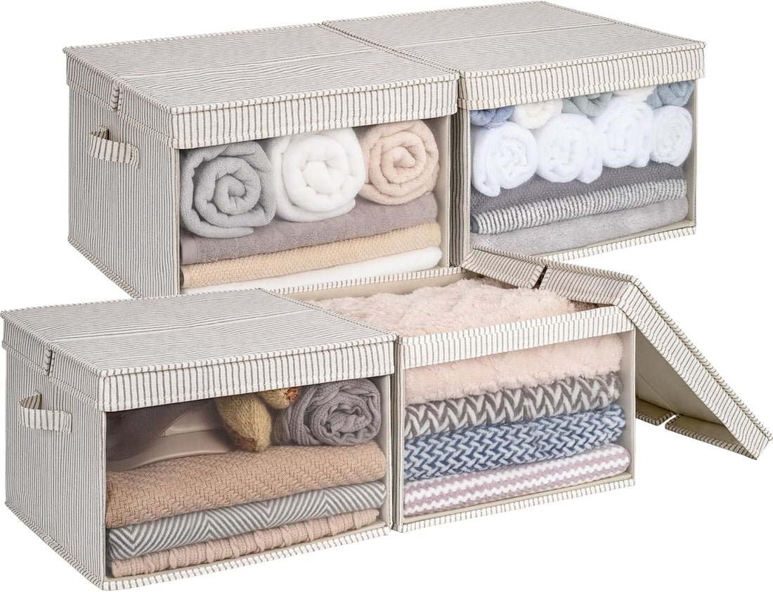 Decorative Closet Basket with Lid and Clear Window, 4-Pack