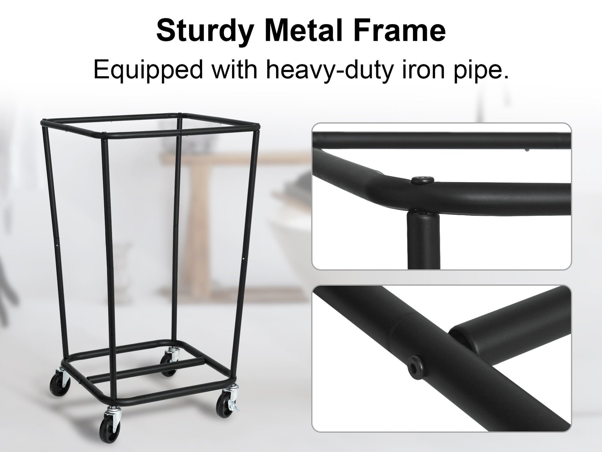 This clothes hamper is crafted from a high-quality metal frame and fabric, enhancing its sturdiness and durability. Its neutral style makes it a perfect fit for any home decor and ideal for storage use.