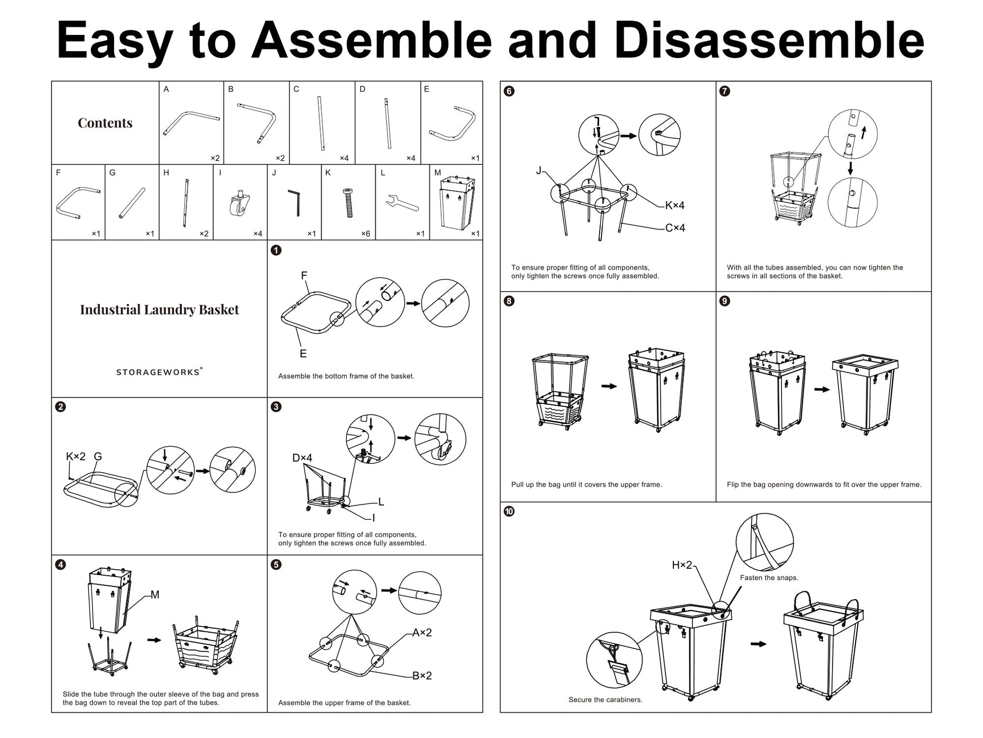 The laundry hamper comes with four 3-inch casters, including two with brakes, ensuring effortless maneuverability as you transport it to the laundry room and stability when locked in place.