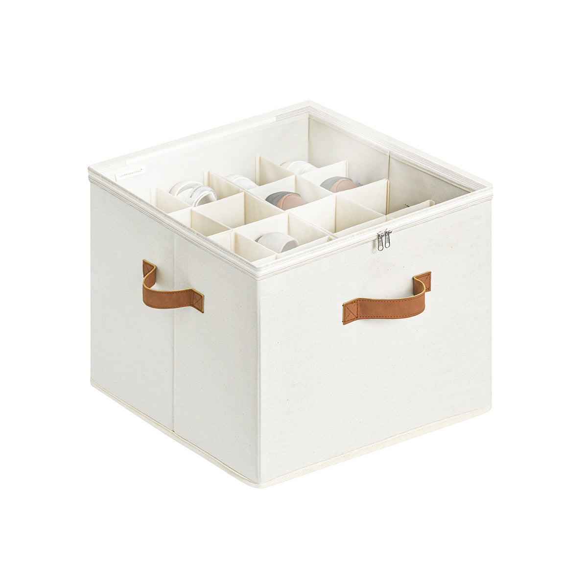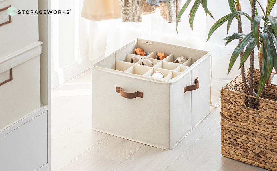 - The internal polypropylene dividers of this shoe storage organizer for the closet are attached to the side panels, making it easy to customize the compartment sizes and keeping shoes securely in place during storage.